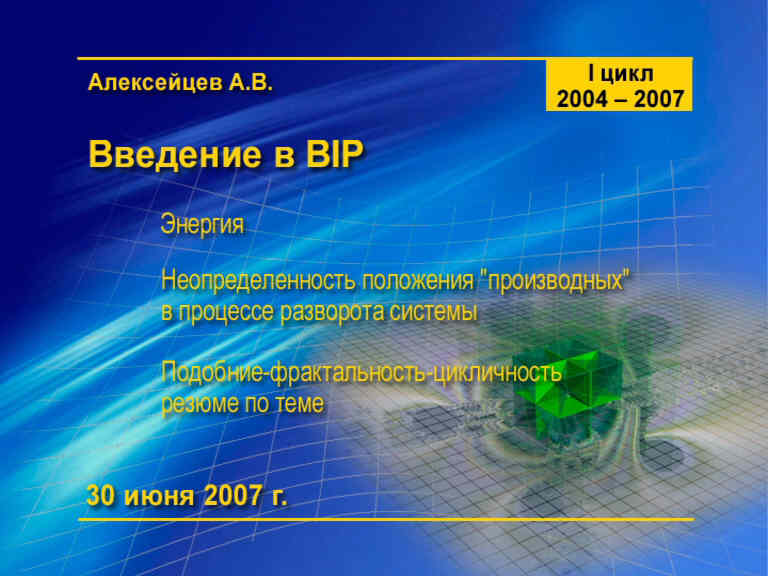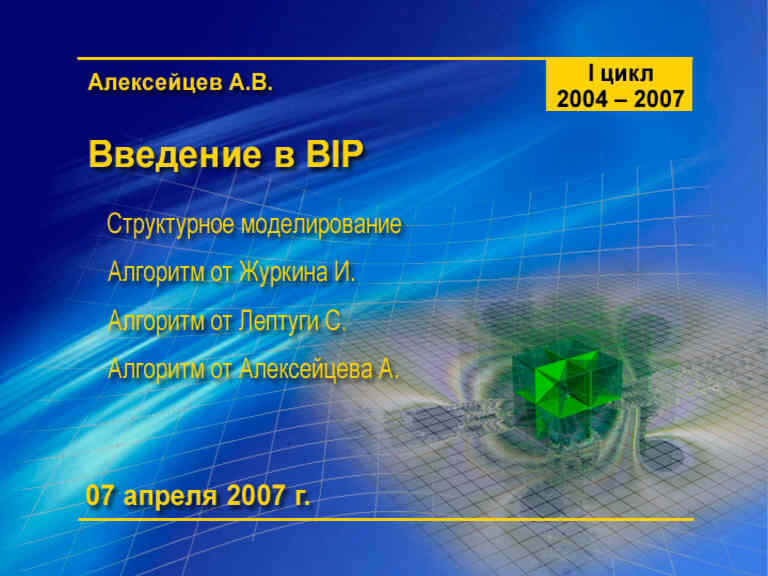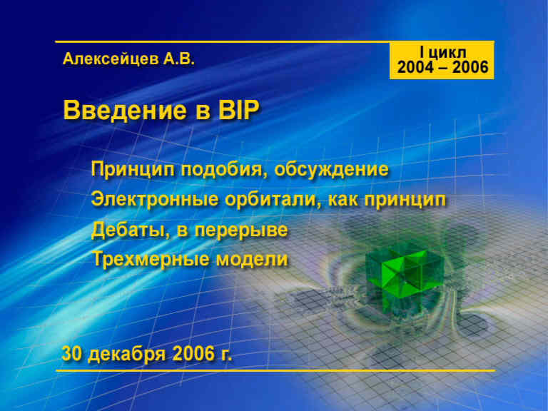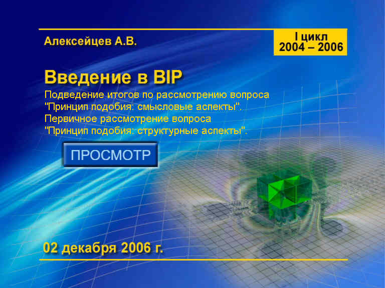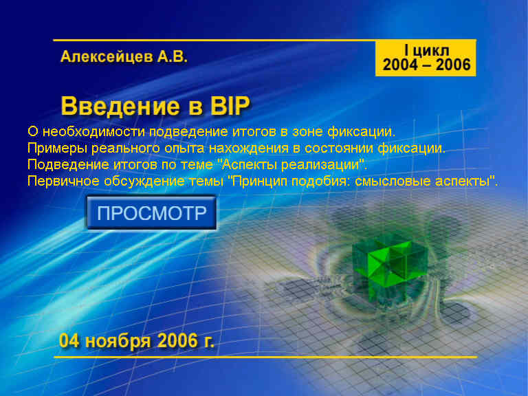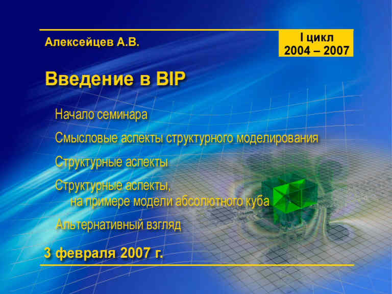 II. Семинары Александра Алексейцева "Введение в BIP"
