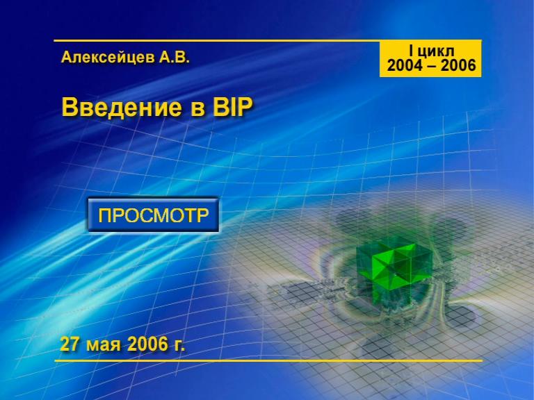 2005-2008 A_27_07.04.2007 Структурное моделирование: практические аспекты - "Алгоритмы построения абсолютного куба» Содержание Структурное моделирование: рассмотрение различных алгоритмических подходов к формированию рабочей модели, представленных участниками семинара. - алгоритм 1, - алгоритм 2, - алгоритм 3 Смотреть видео онлайн Часть 1 Часть 2 Часть 3 Аудиодорожка семинара одним файлом A_27_07.04.2007_all.rar (72.1 МБ) Аудио Ниже каждый архив представляет собой отдельный фрагмент аудиозаписи, что позволяет скачивать файлы постепенно по мере необходимости. .